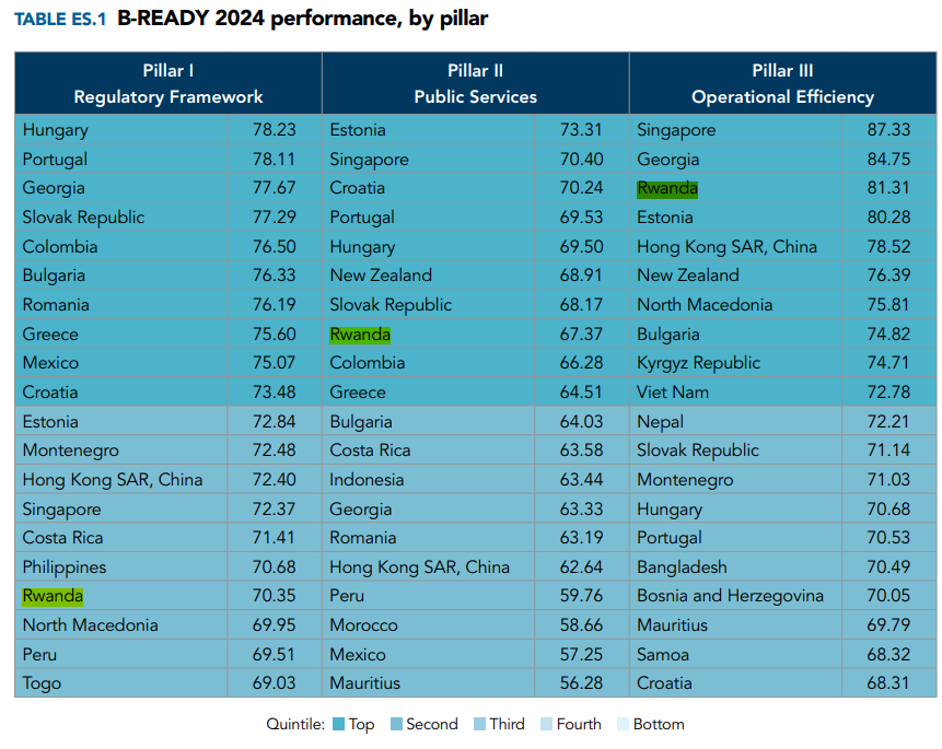 The "Business Ready 2024" report reveals the business climate of different economies, analysing those economies across three key components: the Regulatory Framework, Public Services, and Operational Efficiency. In East Africa, in this case, Rwanda, Kenya, Tanzania, and Uganda all differ one from another, each with its unique business climate that has different attractions for investors.